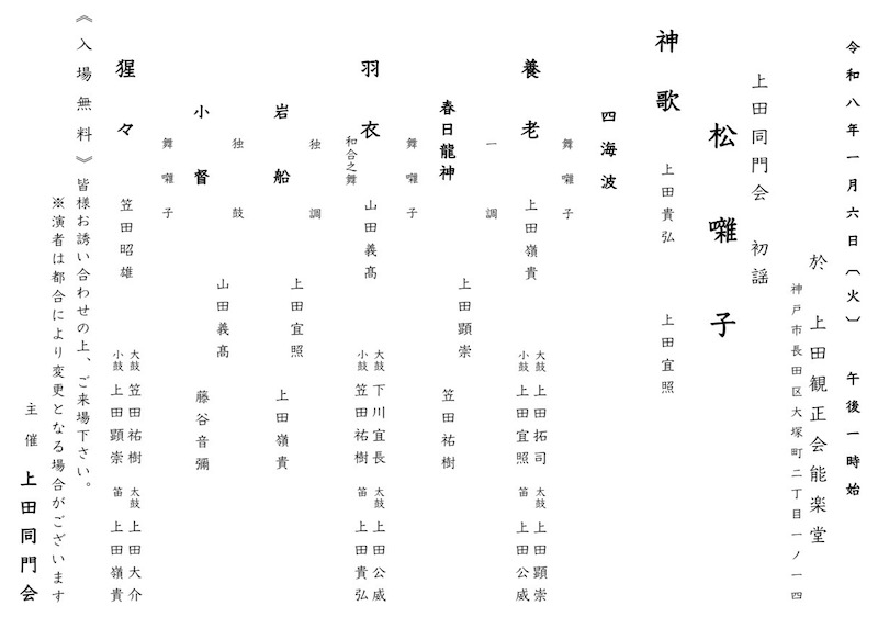 ◇電話申し込み 笠田能楽会(078-330-7265)