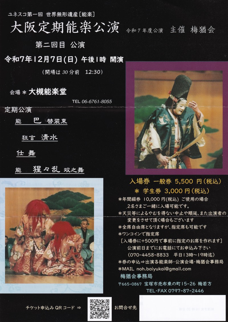 ◇チケットのお問い合わせはTTR能プロジェクトまでお願いします