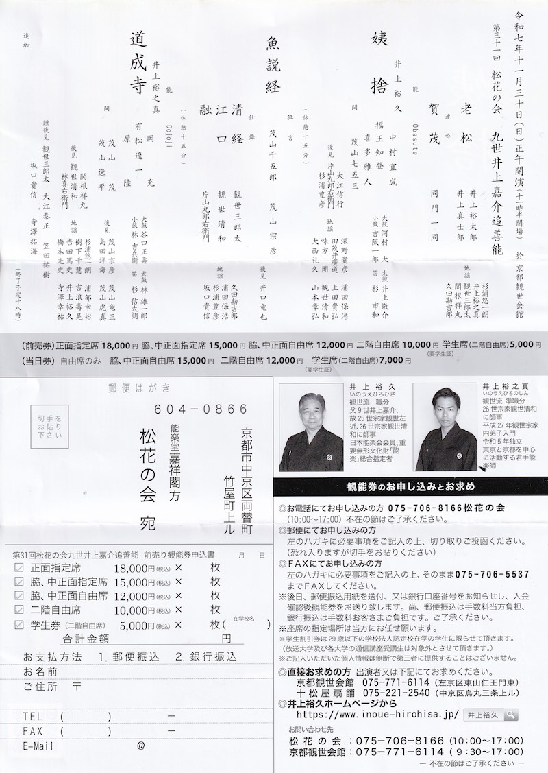 ◇松花の会 九世井上嘉介 十三回忌追善能